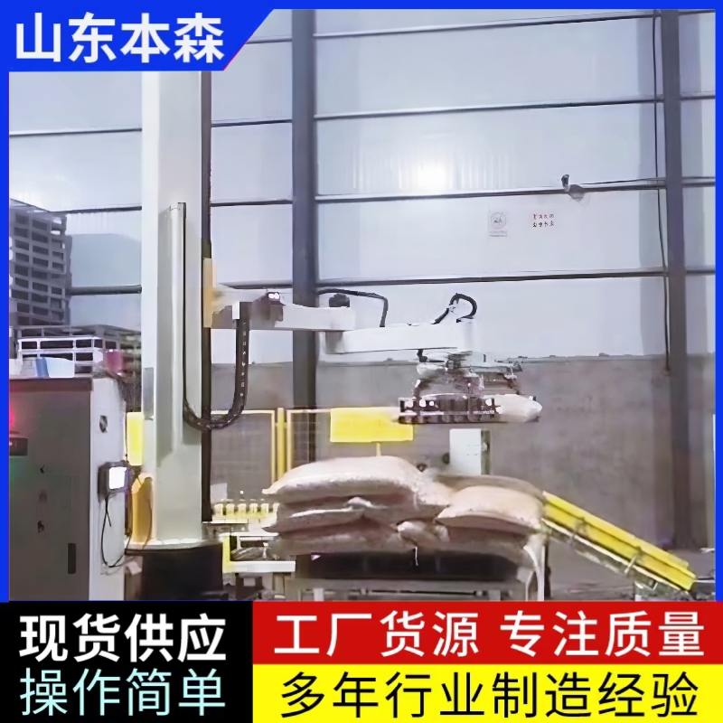 机器人码垛花生全自动立柱式堆包机是一种专为花生等袋装物料自动化码垛设计的工业机器人系统,以下从定义、原理、优势、应用场景四个方面进行介绍: